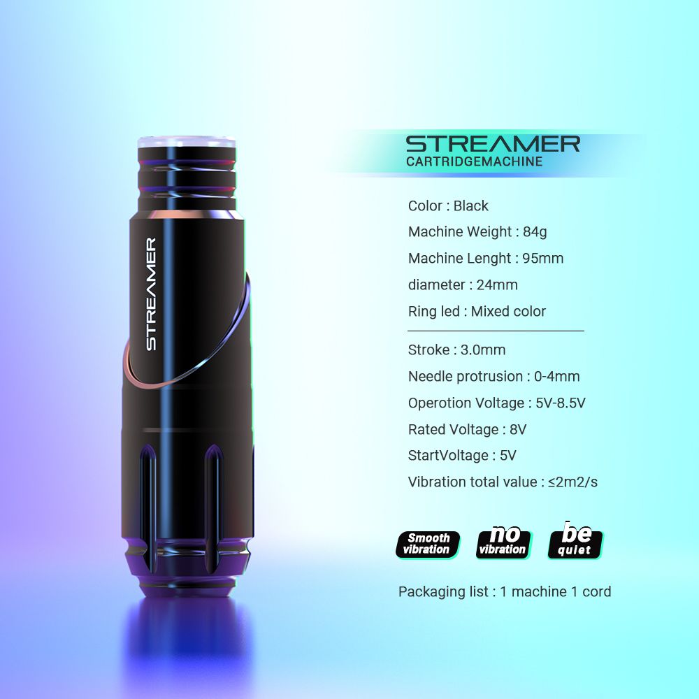 - The characteristic of the Streamer tattoo pen is the smooth needle ejection and stable bearings, when it works on small patterns, the pen speed is uniform and smooth, no ink leakage, no excessive pressure, and it can even be used for eyebrows and lips.