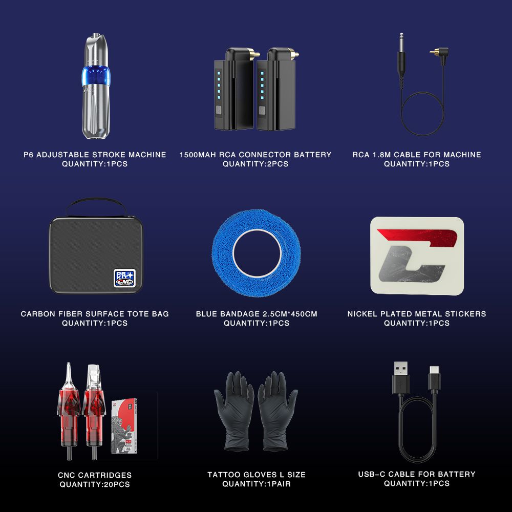 Easy switching according to different operating elements brings a new sense of freedom. CNC tattoo gun kit includes our best-selling CNC Police mixed tattoo cartridges, meet the requirements of different styles of tattoos, making the lining and shading more enjoyable.