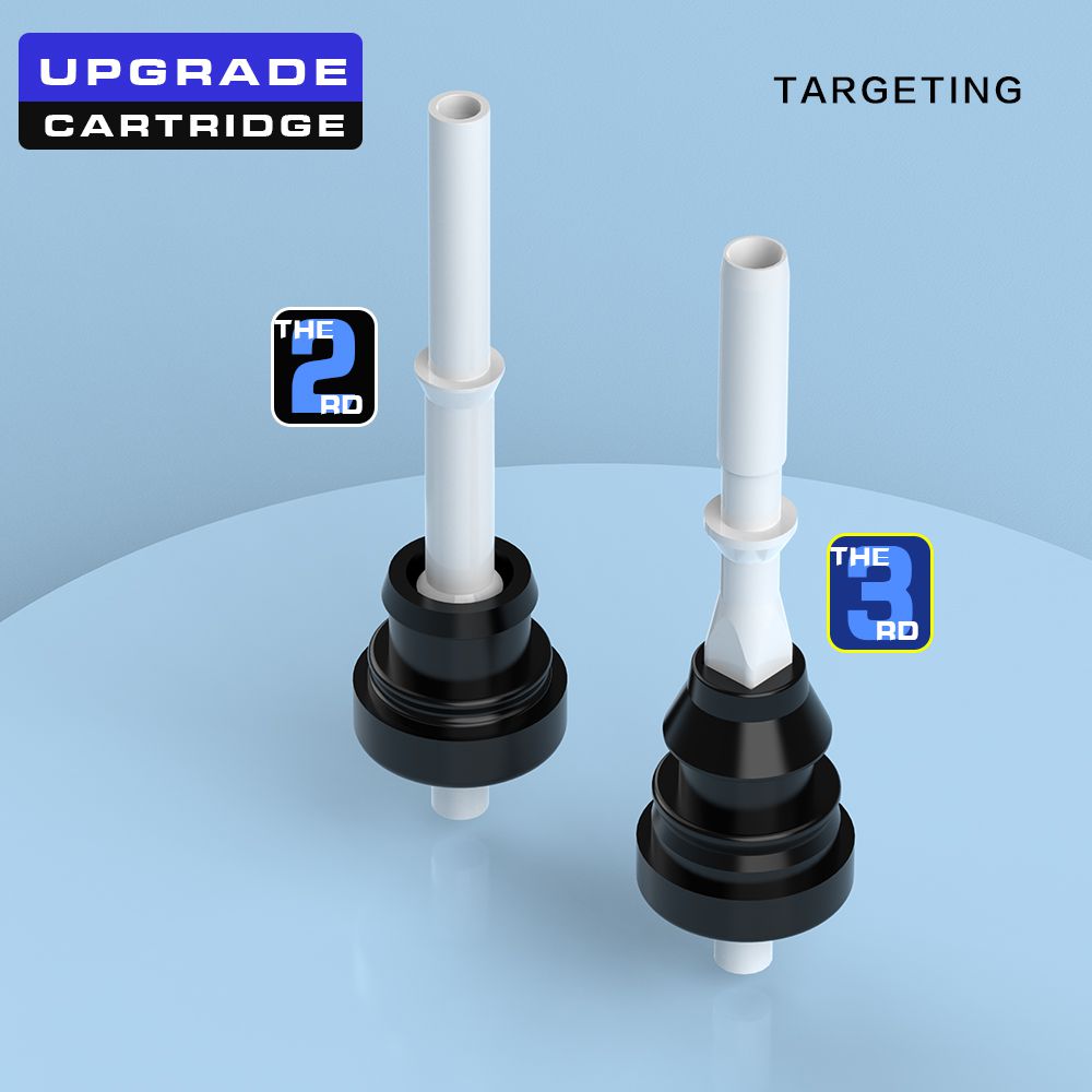The upgraded positioning brings the needle closer to the bottom of the barrel tip nozzle, resulting in a more stable needle position. This design also imparts better ink flow and greater skin penetration accuracy.