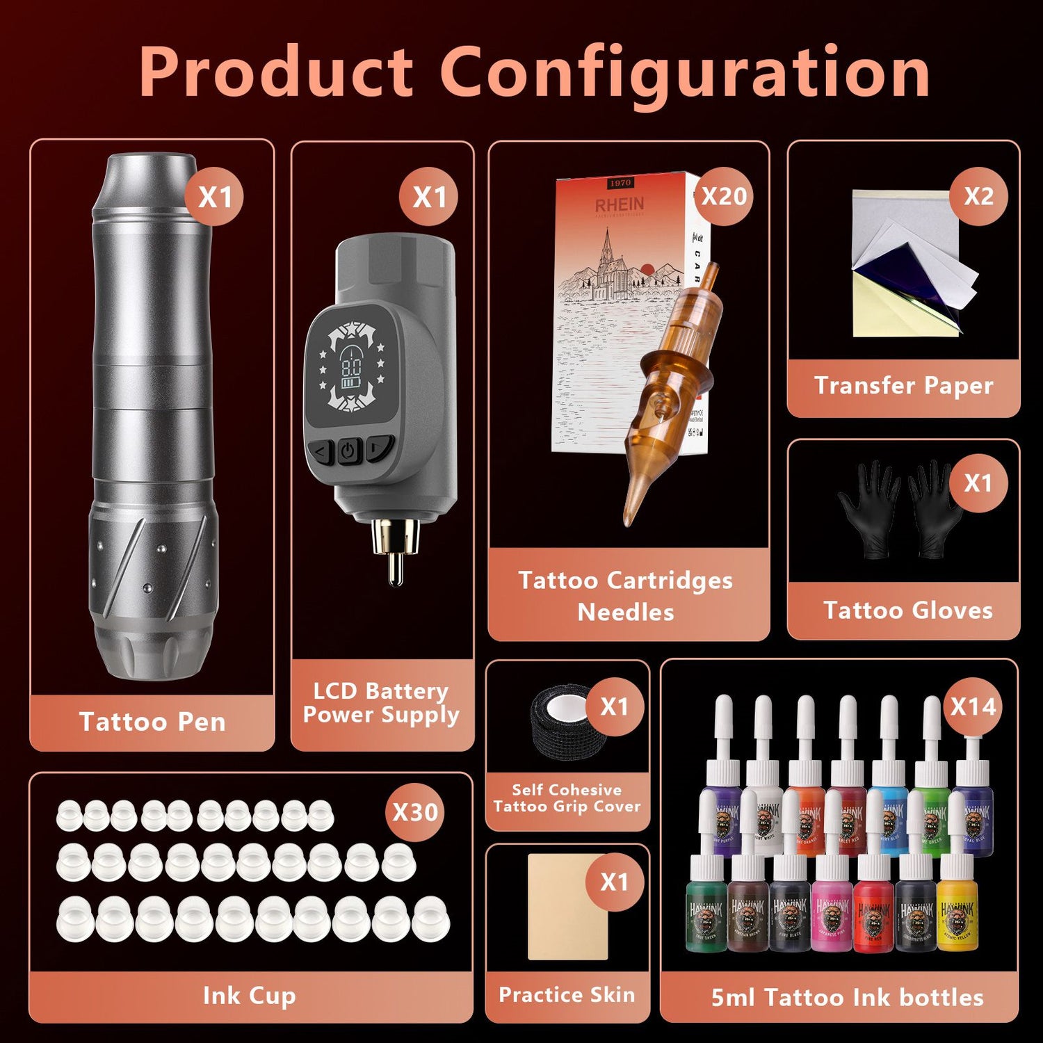Hawink Complete Wireless Rotary Tattoo Machine Kit EM155TI201EN02